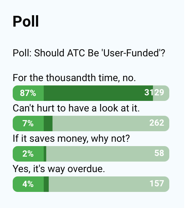Home/Features/Last Week’s Poll Results: Keep Public ATC Features Last Week’s Poll Results: Keep Public ATC Editorial Staff Sunday, December 29, 2024 at 10:28 PM ET Verified Key Takeaways: There’s scant support among respondents for ATC privatization. Share this story Editorial Staff