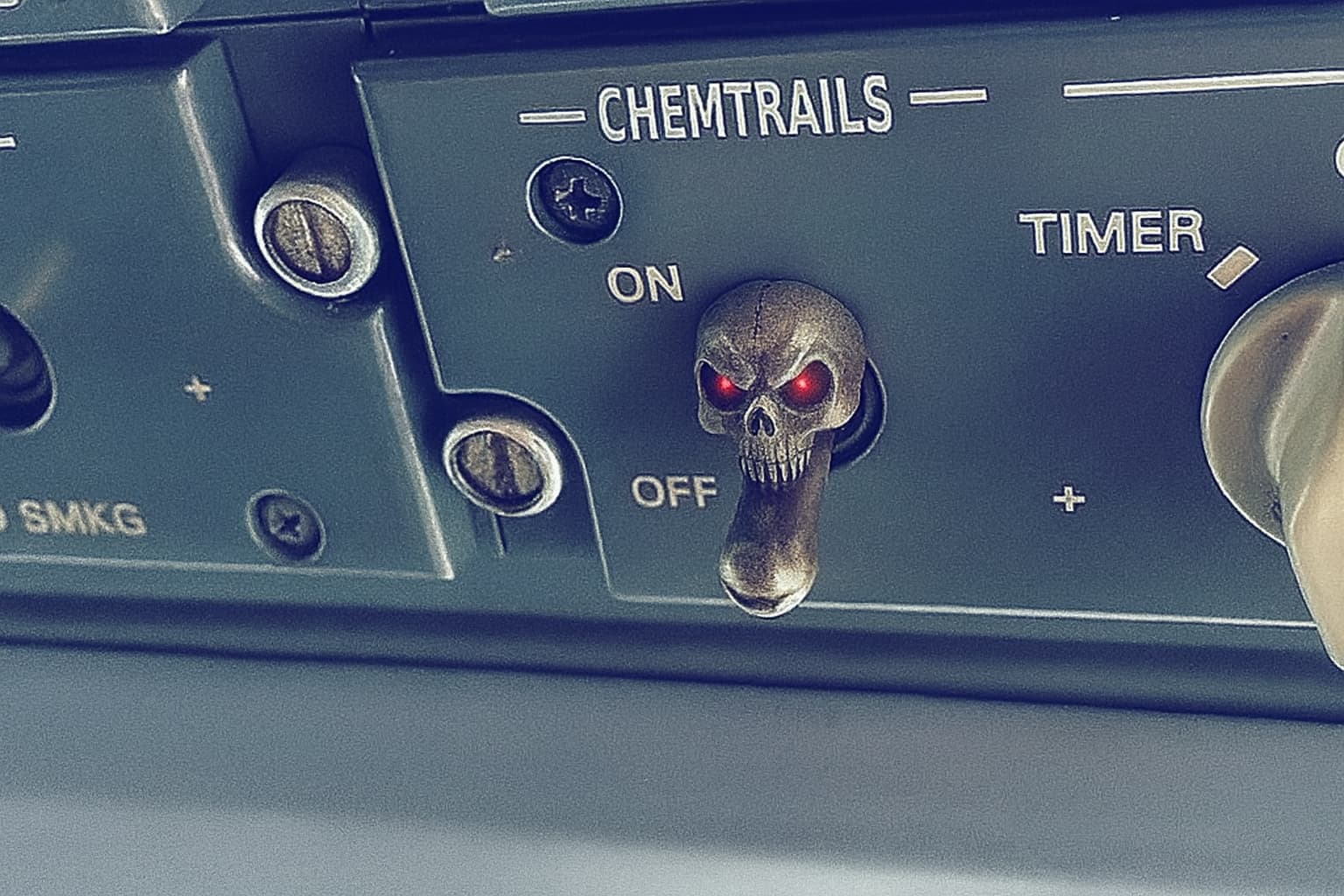 I think the photo of the “chemtrails” switch is a phony. All the Chemtrail switches I’ve seen had red toggle guards over them.