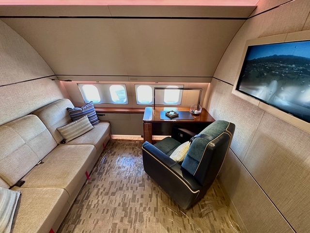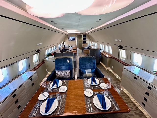 On display at this year’s NBAA-BACE in Las Vegas was a Boeing Business Jet (BBJ). AVweb got a rare look inside the aircraft, which is typically used by the aerospace giant’s executives.